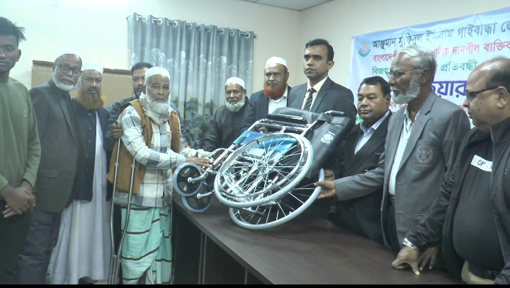 গাইবান্ধায় আঞ্জুমান মফিদুল ইসলামের উদ্যোগে হুইল চেয়ার ও কম্বল বিতরন