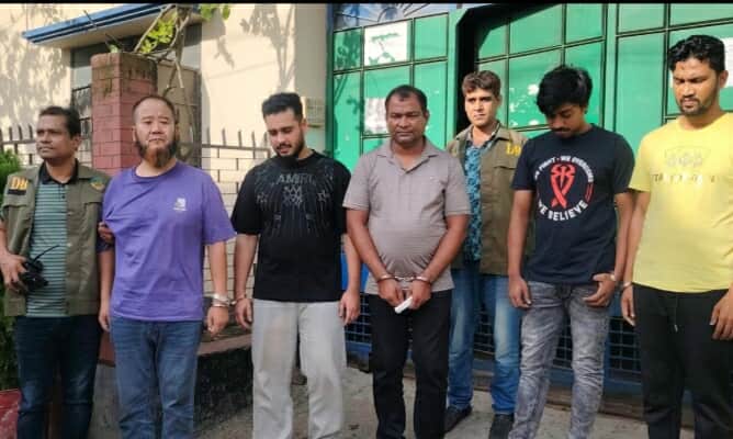 অনলাইন প্রতারক চক্রের চীনা নাগরিকসহ ৫ জনকে গ্রেপ্তার করেছে জিএমপি ডিবি পুলিশ