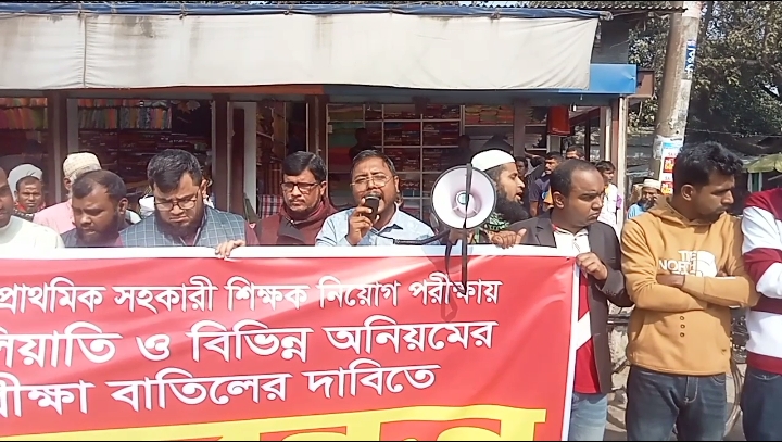 গাইবান্ধায় প্রাথমিক সহকারী শিক্ষক নিয়োগ পরীক্ষা বাতিলের দাবিতে মানববন্ধন